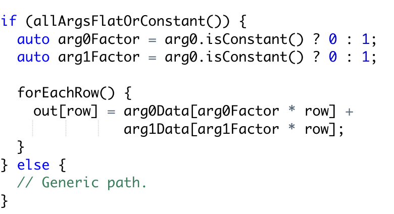we couldn’t think of an efficient way to do that in a vectorized engine. Velox doesn’t use code