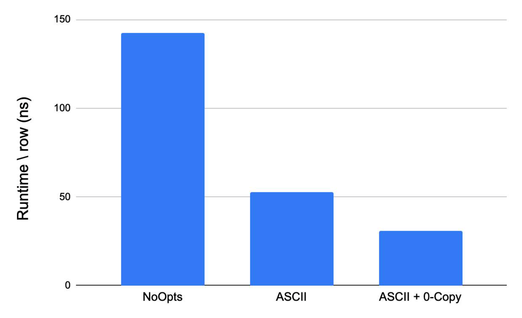 The figure below shows the effect of this optimization on the processing time of a query of primitive operations (the expression is a common pattern in ML use cases).